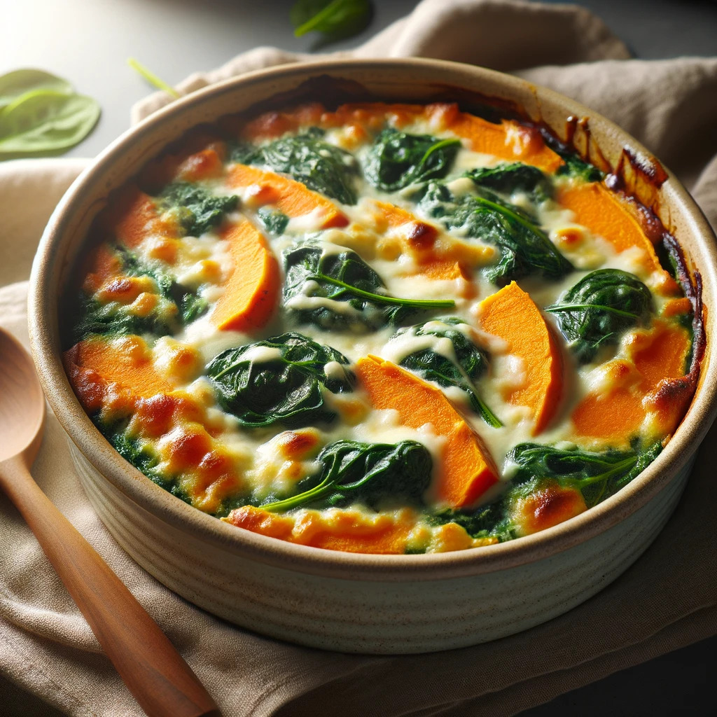 このグラタンは、ビタミンA、ビタミンE、カルシウムが豊富なさつまいもとほうれん草を使った、妊活におすすめのレシピです。さつまいもの自然な甘みとほうれん草の風味がミルクソースと絶妙にマッチし、身体を温める栄養たっぷりの一品です。お好みでチキンやサーモンを加えて、たんぱく質の摂取量を増やすことも可能です。