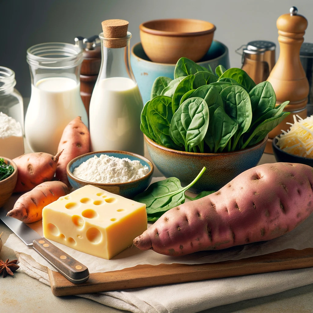 さつまいもとほうれん草のミルクグラタン