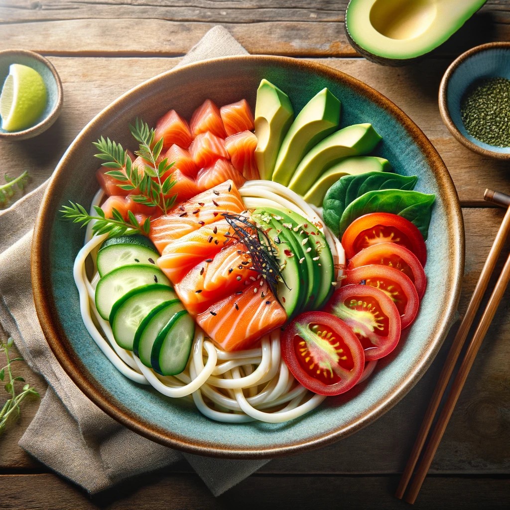 この冷やしうどんレシピは、暑い季節にぴったりのさっぱりした一品です。妊活中に重要なオメガ3脂肪酸豊富なサーモンと、ビタミン、鉄分、亜鉛を豊富に含む野菜をたくさん使っています。ヘルシーで栄養バランスも抜群!