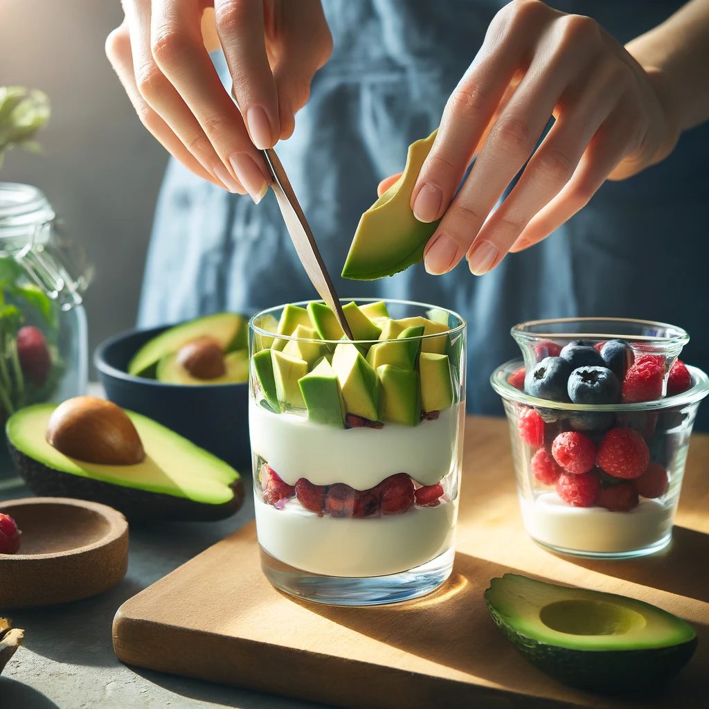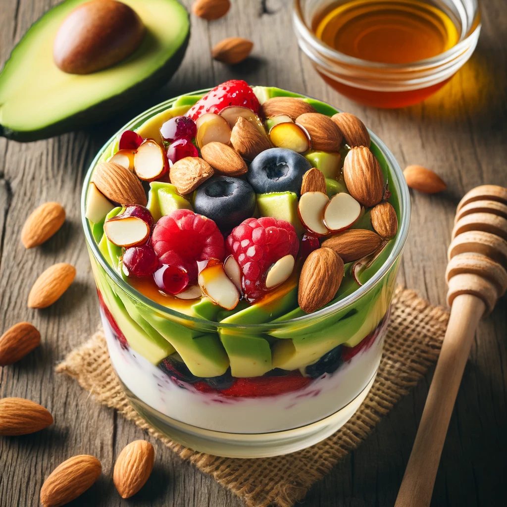このデザートは、妊活に必要なビタミンE、ビタミンB群、カルシウムが豊富に含まれています。アボカドとベリーの組み合わせが抗酸化作用を高め、ヨーグルトのプロバイオティクスが消化を助けます。見た目も美しく、甘さ控えめでヘルシーです。
