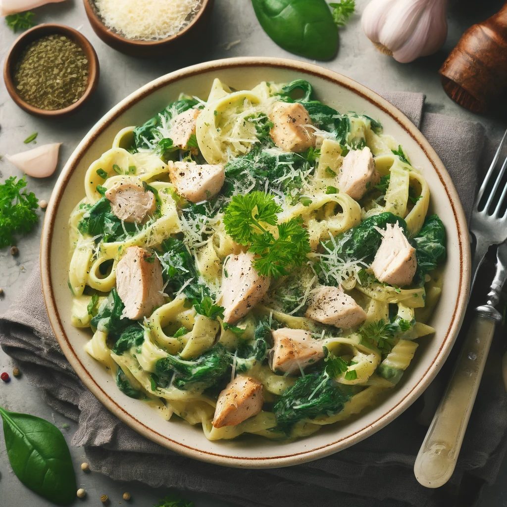 このクリームパスタは、妊活に必要な栄養素を豊富に含んでいます。鶏むね肉は高たんぱく質で低脂肪、ほうれん草には鉄分と葉酸が豊富に含まれており、クリーミーなソースで美味しくいただけます。