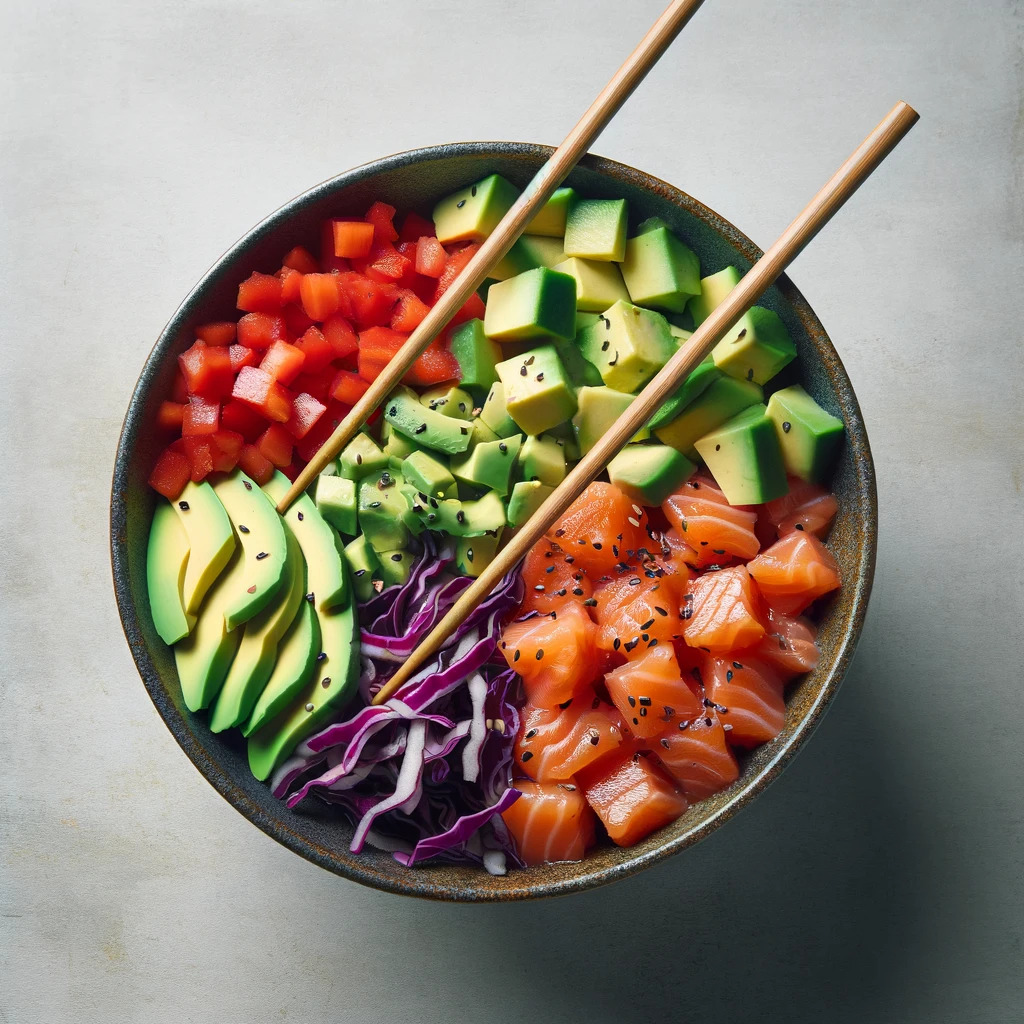 アボカドとサーモンを使ったポキボウルは、オメガ3脂肪酸やビタミンE、たんぱく質が豊富です。手軽に作れるうえ、栄養価も高く、彩りも美しい料理です。