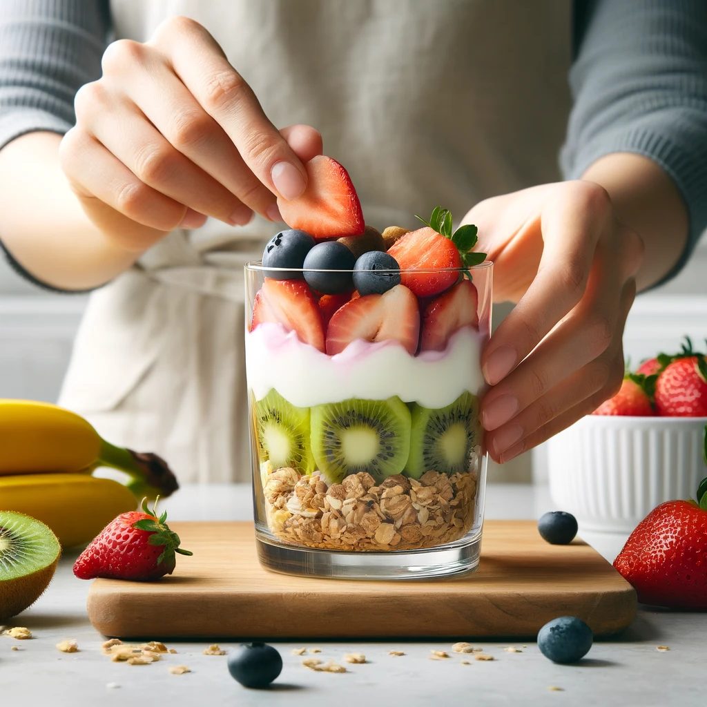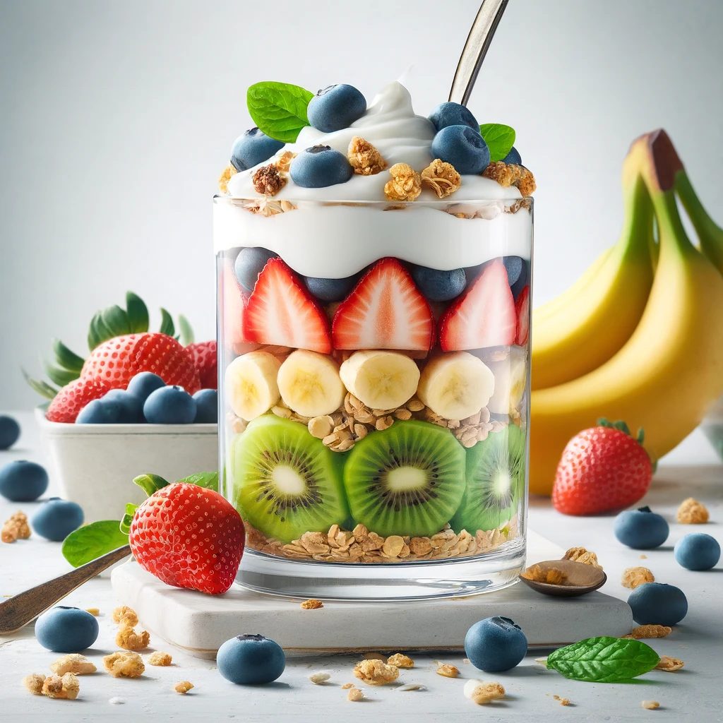 このレシピは、たんぱく質、ビタミンB群、ビタミンA、ビタミンE、カルシウムなどの栄養素をバランスよく摂取できるデザートです。ヨーグルトと果物を使ったシンプルでヘルシーなパフェは、甘くて美味しいデザートタイムを楽しめます。