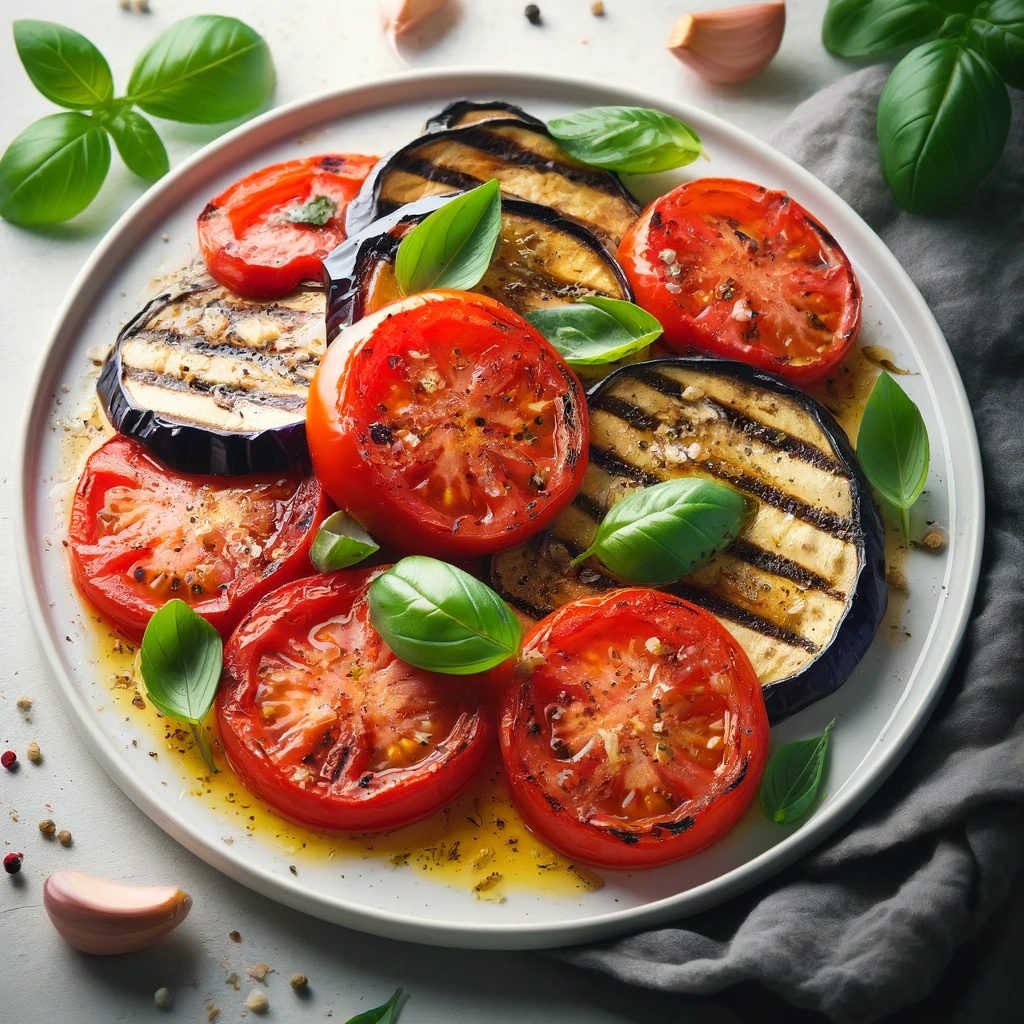 トマトとナスを使った夏野菜グリルは、ビタミン類やミネラル、抗酸化物質が豊富で、バランスの良い食事をサポートします。シンプルな調理法で、食材の旨味を引き出します。