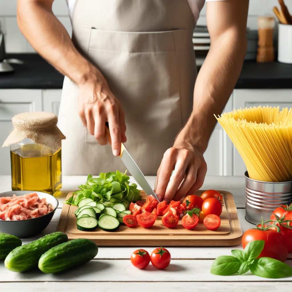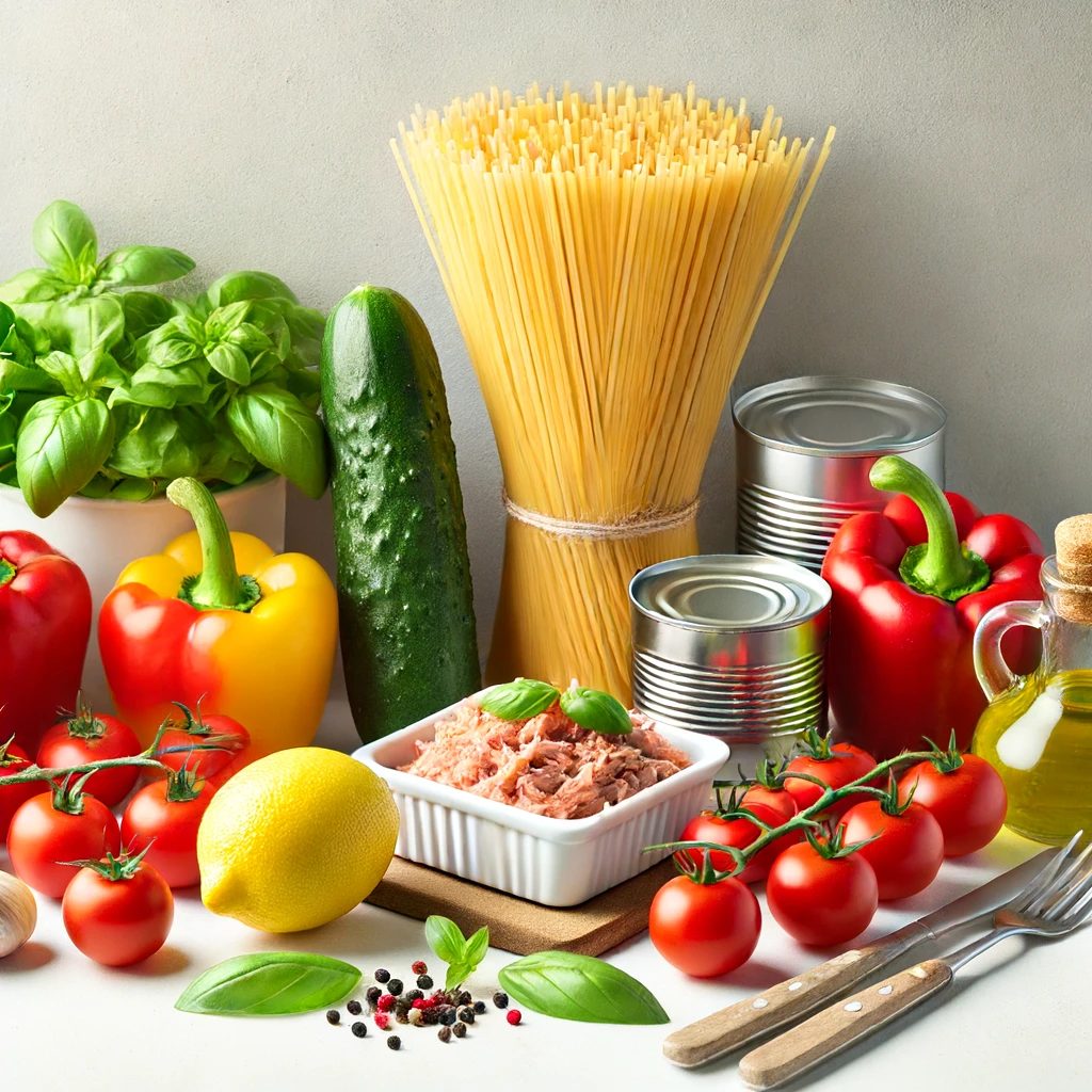 夏野菜とツナを使用した冷製パスタです。簡単に作れて、ビタミンやミネラルをバランス良く摂取できる一品です。