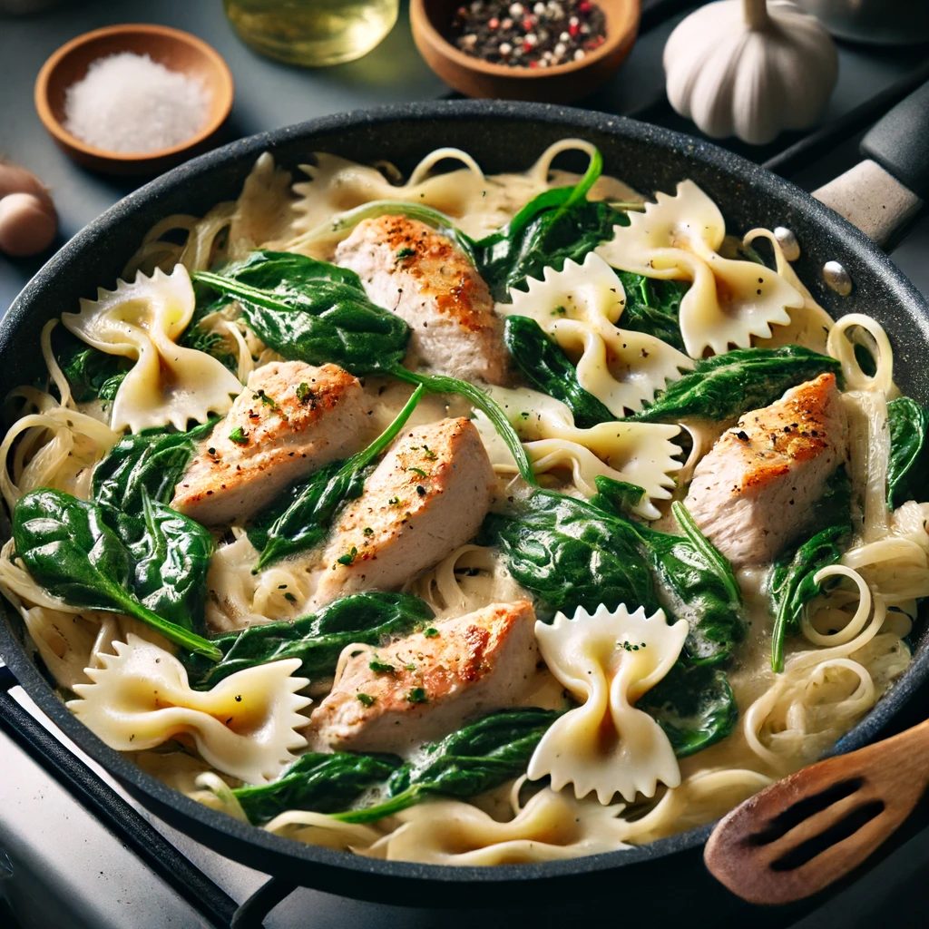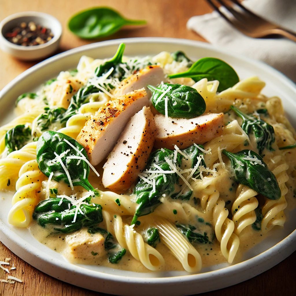 ほうれん草とささみを使ったヘルシーで栄養満点なクリームパスタです。ほうれん草は鉄分や葉酸を豊富に含み、ささみは高たんぱく・低脂肪で、バランスの取れた食事が楽しめます。