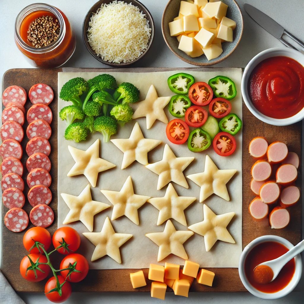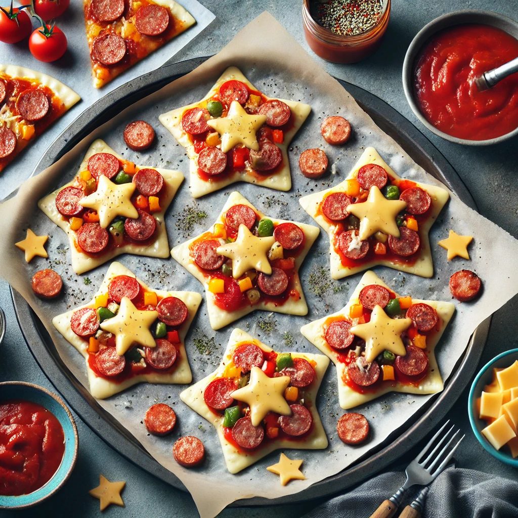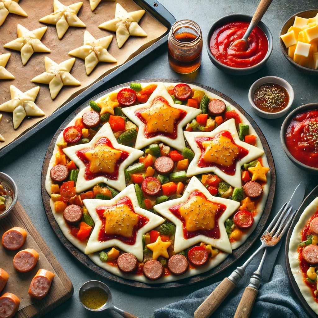 七夕をテーマにした星形のピザです。野菜がたっぷり入っており、栄養バランスに優れています。簡単に作れるので、忙しいときにもぴったりです。