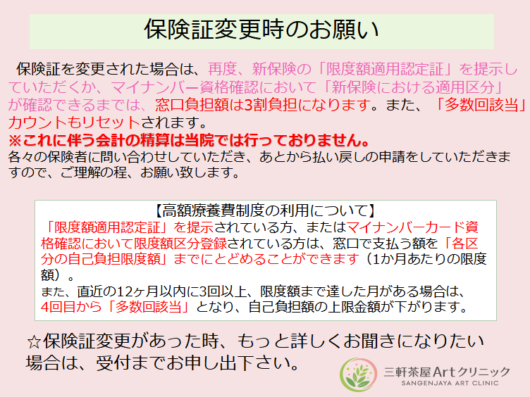 保険証変更時のお願い