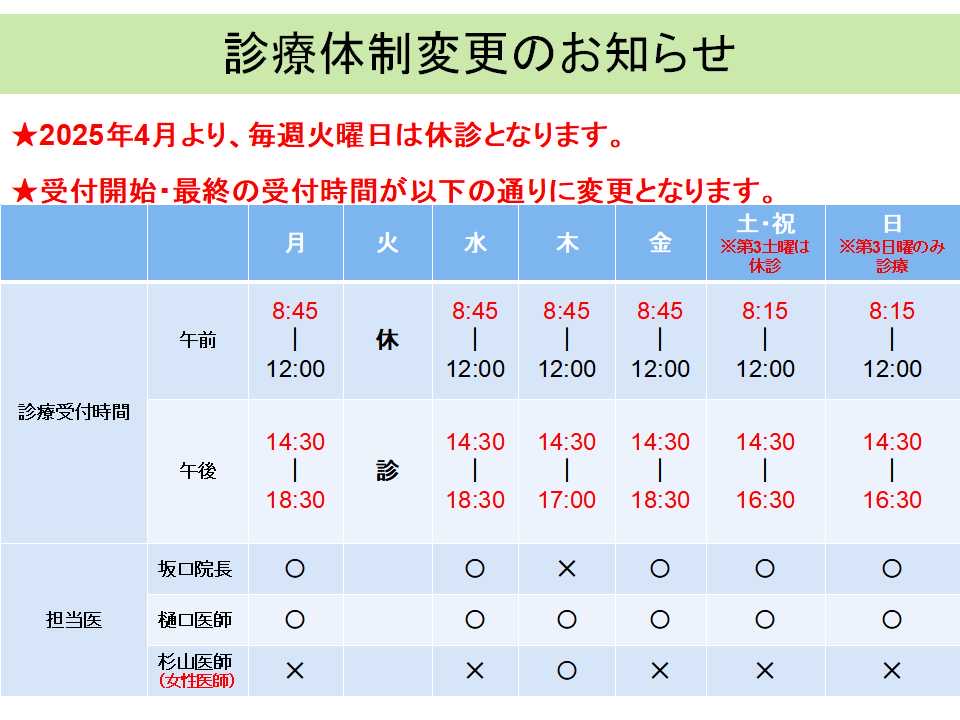 診療体制変更のお知らせ
