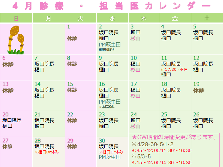 4月診療・担当医スケジュールのご案内