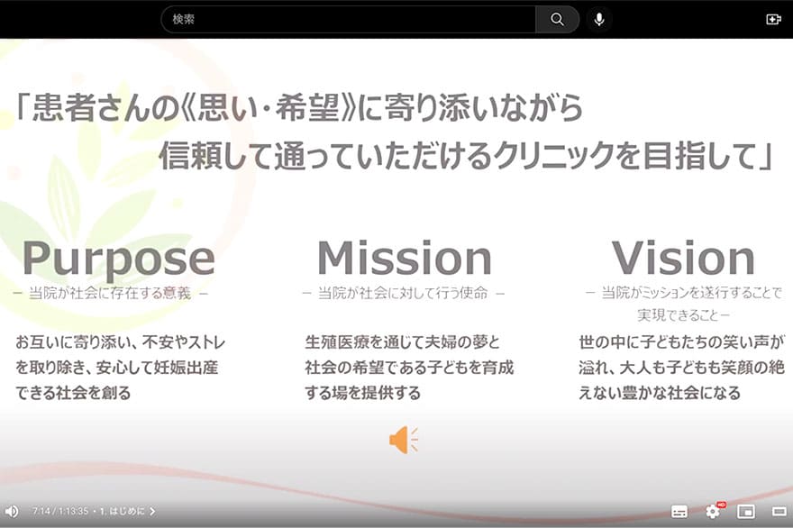 患者さんによっては自分なりにお調べになられた方もいらっしゃることと思いますが、まずは正しい知識をいま一度整理し、ご確認いただくためにも当クリニックの体外受精説明会・一般不妊治療説明会(ガイダンス)の動画をご覧ください。